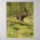 This fine art print by Oliver Kemp illustrates a brown bear stepping on a fallen tree in a forest. The pastel green colors are calming for the eye and create a nice warm feeling of the awakening nature in the spring. A great addition to any rustic home decor!