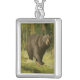 Black Bear Stepping on a Tree Trunk Silver Plated Necklace