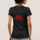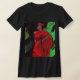 A ladys black tee shirt, with a beautiful image of a african american woman, on the front, painted by Jo-Ann Hayden. The words"black beauty" are on the back
