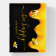 A chic black background decorated with golden dripping honey. The text: Bee Happy with a golden hand lettered style script with swashes. Personalize and add your name, family name.