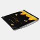 A chic black background decorated with golden dripping honey. The text: Bee Happy with a golden hand lettered style script with swashes. Personalize and add your name.