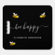 A chic black background. The text: Bee Happy with a white hand lettered style script with swashes. Personalize and add your name.