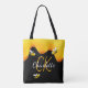 A stylish black and happy smiling bumble bees. Decorated with sweet, golden honey dripping. Personalize and add your name and monogram initials, golden and white letters. The name is written with a hand lettered style script.