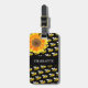 Decorated with happy, smiling yellow and black bumble bees and a large watercolored sunflower. A chic black background. Personalize and add a name.