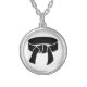 Martial Arts black rank belt in a thick silver necklace.