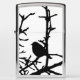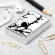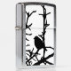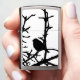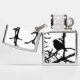 This contemporary fine art Zippo Lighter features a black and white silhouette modern abstract pattern of a Dark-eyed Junco (Junco hyemalis) perched on a bare branch high in a tree. This bird is actually a kind of small, gray and white sparrow.