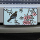 Black Bird Pink Cherry Blossom Tree Branches License Plate