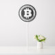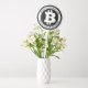 Celebrate in style with custom party supplies. This balloon is ready to be customized with your own messages with one message at the top and one at the bottom. In the center is a Bitcoin symbol in black against a white background. The design appears on both sides of the balloon.