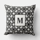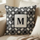 Black Black White Art Deco Monogram Pattern Throw Pillow