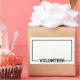 featuring title “volunteer” in black bold sans serif font with blank space for your name on white background with black border.