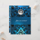 BLACK & BLUE DAMASK GEM STONE MONOGRAM white Invitation