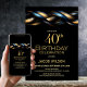 Black Blue Gold 40th Birthday Party Invitation