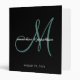 Elegant Black Blue Green Script Monogram Wedding Album 3 ring binder