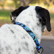 This Ninja Mom collar is made of quality materials which highlight the wonderful Ninja Mom Karura bird design. I recommend it for all the Ninja dogs out there! The logo print is wonderful. It turned out better than expected. The collar and leash look so good together.