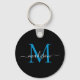 Simple Black Ocean Blue Monogram Elegant Modern Script Keychain