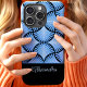 Transport your style back to the Roaring Twenties with this sophisticated Art Deco-inspired design. The pattern features elegant, fan-like palm fronds in varying shades of blue, set against a crisp white and bold black backdrop for a high-contrast, Gatsby-era aesthetic. A sleek black section at the bottom provides the perfect canvas for a personalized name in a graceful white flowing script. This timeless look combines vintage glamour with modern customization, making it a standout choice for anyone who loves retro luxury. The geometric precision and botanical influence offer a polished, professional finish that exudes classic charm.
