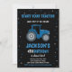 Black Blue Tractor Birthday Invitations