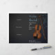 This is an elegant folded recital or concert program template featuring a violin and bow that appears to lie on top of the paper.