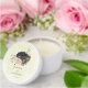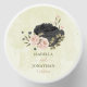 Beautiful romantic wedding mini candle tin favor featuring black and blush pink flowers and some pretty leaves .