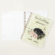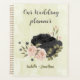 Beautiful romantic wedding planner featuring black and blush pink flowers and some pretty leaves .