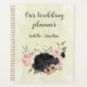 Beautiful romantic wedding planner featuring black and blush pink flowers and some pretty leaves .