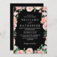 Black Blush Pink & Peach Flower bouquet Wedding Invitation