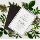 Plain white envelopes are included with paper invitations and will come to fit the invitation size you select. If you don’t need the envelopes, you may choose to not receive them by selecting the dropdown below "Envelopes" and choosing "None." If you’d like to have a design on your envelopes, you can browse all of these available envelopes to find the design that complements your Black Border Simple Unique Wedding Invitation.