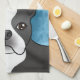 Black Boston Terrier Cartoon Dog Head On Blue Kitchen Towel