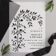 Make a timeless statement with these black botanical bird arch wedding vellum invitations. Featuring a delicate arch of leaves and a charming bird silhouette, this design captures the beauty of nature with a modern aesthetic. The translucent vellum adds a touch of elegance, making these invitations perfect for romantic and nature-inspired weddings.