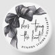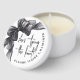 This mini candle features a sticker on the lid with a soft watercolor black bow in the top left corner for a chic, modern touch. The phrase “She’s Tying The Knot” is centered in black script, creating a stylish and elegant look. The bride’s name and shower date curve gracefully around the edge in black serif font, completing the design with a clean, polished feel.