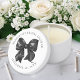 This elegant and chic party favor candle features a soft watercolor black bow, adding a sophisticated and stylish touch. The design includes space for the bride’s name and “Bridal Shower” at the top, with the date at the bottom, making it a perfect keepsake for celebrating the bride-to-be.