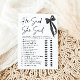 The Black Bow He Said She Said Bridal Shower Game is a sophisticated and fun way to bring laughter and joy to your celebration. Featuring a chic black bow design, this game invites guests to guess whether the bride or groom said certain statements. It's the perfect way to spark conversations, share sweet stories, and discover how well everyone knows the happy couple. Add a touch of elegance and fun to your bridal shower with this delightful game! 🎀💍✨