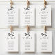 Elevate your wedding decor with our black and white wedding seating table numbers. Beautifully crafted, these table numbers feature a classic white backdrop adorned with an elegant watercolor black bow. Personalized with your table number, and the names of the guests who are seating at that table. Indulge in sophistication and make your big day memorable. NOTE: you will need to add each number you require to your cart seperately.