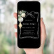For a Christmas party with family and friends.. Decorated with a white simple hand-drawn bow, white and gold baubles. Personalize and add the details. Christmas party with a heart. Black background.
