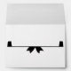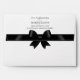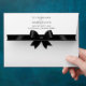 A classic and formal black and white wedding invitation featuring a large black bow and ribbon against a pure white background.