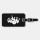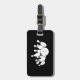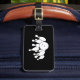 Luggage tag with a silhouette of a bowling ball knocking down pins. This design is available in different colors and on other products at my store. Customize it with a name, address, and phone number.