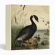 Vintage painting of a Black Brant Goose standing on a sandy bank of a river with cattails in the background. This painting was done in the Victorian Era, 1862 by artist and American ornithologist John Cassin.