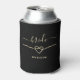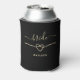 Simple, elegant, modern, minimal, black Bride can cooler with monogram and faux gold rope heart.