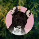 Quirky pop art inspired french bulldog christmas ornament featuring a black brindle frenchie dog on a pastel pink background that can be changed to any color, add your pets name.