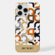 This design features a stunning combination of taupe beige, dark brown, black, rust orange, and white abstract art motif. The shapes are curved, round and have square angles, creating a dynamic and rhythmic effect. The pattern is both ornate and elegant, with a touch of funkiness and hipster flair. And there is also room to customize or personalize with a name, monogram, initials or text of your choice. Whether you are looking for a chic and modern style or a vintage and retro trend vibe, this pattern will suit your taste and personality. This design is available in Apple iPhone 6, 7, and 8 Plus, 10 or X, XR, XS, 11, 12, 13, 14 Mini, and 15 Pro Max cellphone cases. Show off your personal style, look fashionable and trendy, and feel stylish with a unique design on a mobile device accessory of your choice.