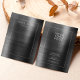 A black faux brushed metal image framed by a thin white rectangle provides the background for customizable white sans serif and italic text, adjustable earring guides, and space on the reverse for your white logo (or delete if you wish).