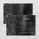 This elegant modern wedding details enclosure card features a black brushed metal background image sprinkled with faux diamond glitter. Customize the white text, with the title "Details" in stylish handwriting script and the remaining text in sans serif font. The reverse side features a matching black brushed metal and faux glitter design.