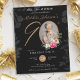 Black Budget Surprise 90th Birthday Invitation. Throw the ultimate surprise with a budget-friendly milestone birthday invitation that’s sure to impress! Featuring a stunning floral design, this invitation brings a pop of color and charm to the celebration. Add a personal touch by including a favorite photo, making it a truly memorable keepsake. Perfect for planning a stylish and affordable surprise party!
