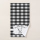 Add a rustic touch to your bath decor with a set of Black Buffalo Plaid Farm Chicken Bath Towels. Towel design features this charming farm animal on an elegant tag and custom text for you to personalize with your family name against a gingham pattern background. Additional home decor items available with this design.