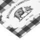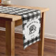 Add a country touch to your dining decor with this rustic Black Buffalo Plaid Farm Pig Table Runner. Table runner design features a farm pig on an elegant tag and custom text for you to personalize with your family name against a gingham pattern background. Additional home decor items available with this design.