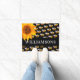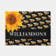 Decorated with happy, smiling yellow and black bumble bees and a large watercolored sunflower. A chic black background. Personalize and add a name.