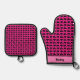 Black Bunnies on Pink Personalized Oven Mitt & Pot Holder Set