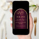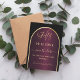 A Save the Date card for a 50th birthday party. A black and burgundy background, decorated with a faux gold arch. Personalize and add a date and your name. The text: Fifty and Save the Date is written with a large trendy hand lettered style script.