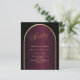 An elegant 90th birthday invitation. A black and burgundy background with a golden arch on the front.