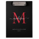 Black Burgundy Red Monogram Elegant Script Name Clipboard
